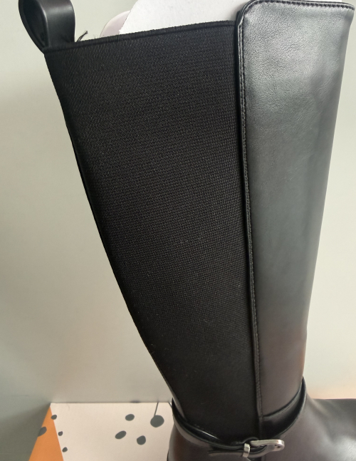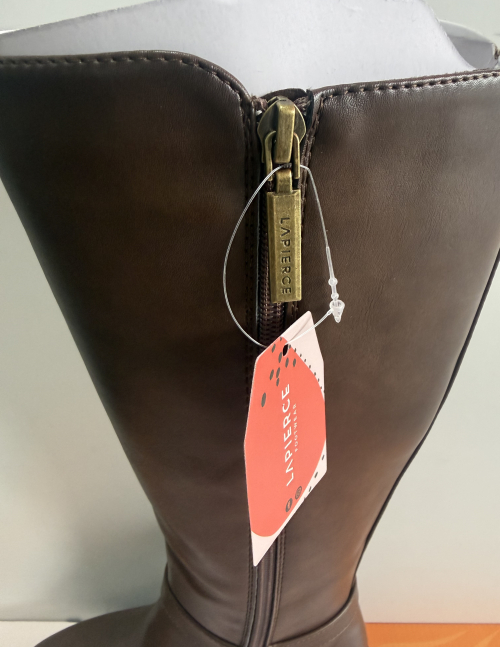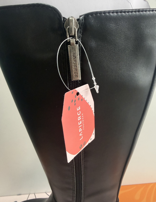 Bota de cano alto da Marca LAPIERCE em pele sintética com elástico na zona da perna e fecho para facilitar o calçar  , salto médio mas super confortável